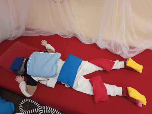 Beim Angebot „Körperwahrnehmung“ erhalten die Kinder die Möglichkeit bei verschiedenen Beschäftigungen, Bewegungsspielen und Entspannungsübungen ihren Körper mit allen Sinnen bewusst wahrzunehmen. Ein gutes Körperbewusstsein hat großen Einfluss auf die Selbstsicherheit und auf das Selbstwertgefühl des Kindes.