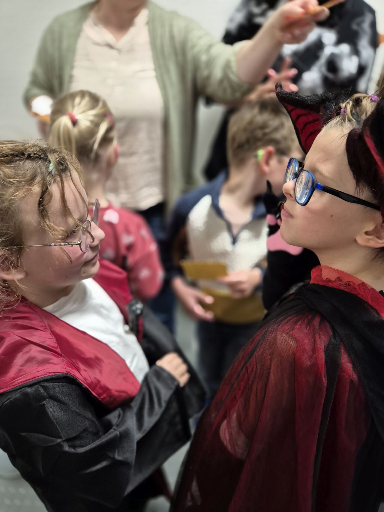 Alle Kinder kamen in fantasievollen Kostümen und konnten an verschiedenen Stationen vieles erleben. An der Tattoostation wurden täuschend echte Verletzungen und Narben aufgeklebt und in der Geister-Bastelstation wurden kleine Spukgestalten gestaltet, während sich an der Fühlstation alle mutig durch glibberige Überraschungen tasteten. An der Fotostation konnten schließlich alle ihre Kostüme festhalten.